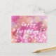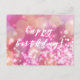 NovaLanePark - Cartão postal, com um fundo cintilante e brilhante rosa e 'Feliz Aniversário!' em tipografia elegante.