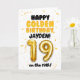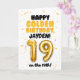 Celebre o aniversário de 19 anos do seu filho no dia 19 com este cartão de Feliz Aniversário Dourado! Com um tema dourado brilhante e alegre, este cartão apresenta um layout divertido e ousado com detalhes de confetes e um grande número de balão dourado. Personalize-o com um nome na frente e no interior do cartão para tornar o aniversário dourado ainda mais especial!