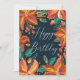 Cartão de "Feliz aniversário" com floral de marinho amarelo vermelho para os amigos.