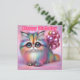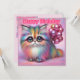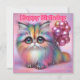 Gato fofo doce com unhas metálicas pintadas celebra um feliz aniversário para qualquer um. As saudações no cartão são "Parabéns". Na parte traseira da placa está uma pequena versão da imagem frontal e muito espaço para escrever uma mensagem. Feito com o auxílio do AI Bing.