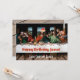 Feliz aniversario, Jesus! O remake engraçado do cartão de Natal do convite da última ceia do tema de Leonardo, do Natal com o Jesus no papai noel vermelho chapéu, da garrafa do champanhe e do Natal endurece. Personalize-o com seu texto do nome e do convite de família