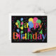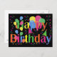 Os cartão retros de um feliz aniversario do design na multi cor projetam com fundo preto.