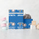 Papel de presente cômico e fofo com texto personalizado e tema de beisebol.