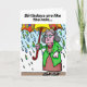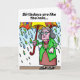 Um cartão de aniversário engraçado para um mais velho com uma senhora velha com um guarda-chuva e um dentro de mensagem positiva.