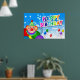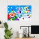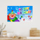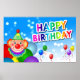 Feliz aniversário com balões de palhaço e outros balões coloridos poster.