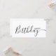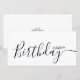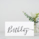 Esta placa lisa moderna e elegante apresenta o texto preto Feliz Aniversário no lado frontal e no verso personalizá-lo com o seu nome ou nome de família. O fundo é de cor branca.