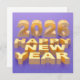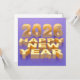 Saudação de Feliz Ano Novo 2026 com texto dourado em fundo roxo