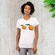 Esta é uma design divertida de dois damascos. Um dos damascos tem um rosto e parece feliz e o outro damasco está virado para o outro lado. Os damascos têm um caule com uma folha verde. Este design de damasco feliz parece excelente nesta camiseta feminina. Perfeito para si mesmo ou como presente