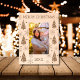 Madeira festiva com texto personalizado "Feliz Natal" e ano personalizado. A design apresenta as árvores de Natal, flocos de neve e pontos desenhados por mão branca. Elevem suas lembranças de Natal queridas com esta bela imagem gravada a laser de madeira!