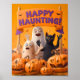 Feliz assombro - Crianças Poster do Dia das Bruxas Um design alegre e alegre, com um grupo de fantasmas sorridentes, gatos pretos e abóboras balançando juntos sob uma faixa que diz **"Feliz assombro!"**. As cores são brilhantes e amigáveis, não assustadoras — perfeitas para as crianças. Esta poster das crianças "Feliz Assustamento" traz risos e diversão ao Halloween. Projetado com fantasmas amigáveis e abóboras alegres, é perfeito para salas de aula, salas de jogos ou festas familiares. poster de assombração feliz, crianças arte de Halloween, decoração amigável na parede do fantasma, poster de gato preto e abóbora, impressão de Halloween para crianças, arte de muro fofa, decoração de Halloween na sala de aula