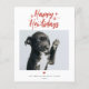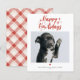 Nosso Cartão de Natal de Pet Photo de orçamento se espalha sem quebrar o banco. Ele apresenta "Feliz Howlidays" em um roteiro festivo vermelho escrito à mão, combinado com estrelas e pontos deliciosos desenhados à mão. O verso ostenta uma xadrez vermelha e bege-tartã. Perfeito para o comprador de férias com orçamento.