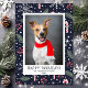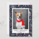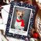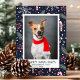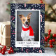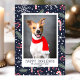 Feliz Dia de Natal de Pet Cartão com fotos. Flocos de neve e doces de fundo azul marinho. Perfeito para o Natal!