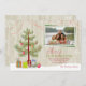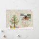 Este cartão com fotos chato de Natal Feliz 5x7 tem um fundo de prancha de madeira desbotada por na moda. À esquerda, há uma árvore de Natal fofinha que tem muitos ornamentos nas galerias e muitos presentes embaixo. Acima da árvore, há miçangas vermelhas e brancas. À direita, você pode personalizar isso com sua própria fotografia. Abaixo da foto, Feliz Natal está escrito em vermelho e verde, abaixo disso, você pode personalizar a mensagem, seu nome de família e o ano.