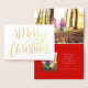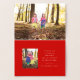 Com um guião de Feliz Natal com letra manuscrita em dourado na frente, este cartão abre-se a uma fotografia de cheio, uma fotografia e espaço mais pequenos para uma mensagem personalizada contra um fundo vermelho.