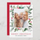 Feliz Cartão com fotos de Natal e imagem personalizada com Holiday Greenery, Holly Berries e Red Background.