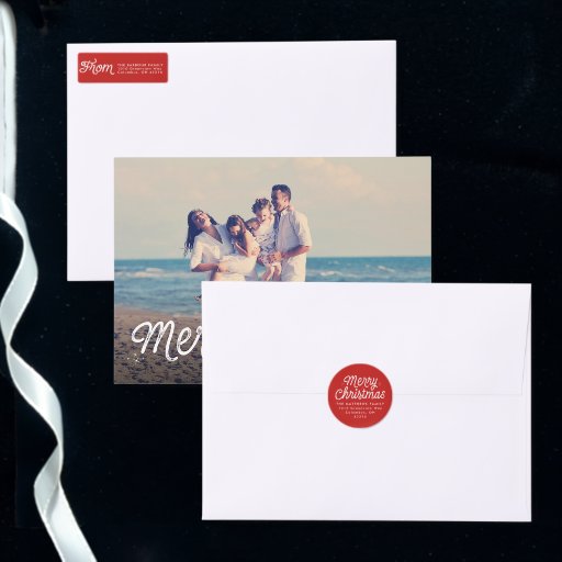 Enviar cartões de natal de Feliz Natal com este cartão de feriado de uma foto com o script retrô. O texto simples permite que sua foto brilhe, seja um casal, as crianças, o animal de estimação ou toda a família. Este cartão de Natal também apresenta um agente estrelado de coordenação. Rótulos de endereço correspondentes também disponíveis na coleção.