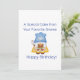 Com seu Gnome favorito segurando um bolo especial com uma saudação de aniversário feliz.