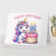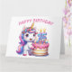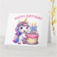 Feliz cartão de aniversário de 15. Quinze anos hoje. Unicórnio bonito, cor rosa e lilás. Um bolo de aniversário colorido com velas. Um cartão de aniversário de uma criança adorável. Este cartão é vazio de dentro para sua própria mensagem. Também disponível como download Digital para transferência para outros produtos.