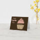 Diversão, design simples que faz você sorrir (e quer um cupcake!). Cupcake rosa pálido empilhado alto com glacé em fundo de chocolate escuro profundo. yum. Vá em frente e personalize com um nome sem custo adicional.