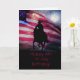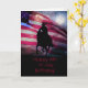 Um cartão de aniversário muito americano Happy de 4 de julho com um vaqueiro e cavalo, fogos de artifício e uma bandeira americana. Uma forma excelente de celebrar não só o quarto, mas também um aniversário.