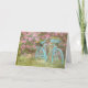 Bicicleta azul velha num cartão de aniversário de jardim floral.