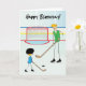 Deseje ao pai do jogador de hóquei um Dia de os pais Feliz com este cartão de boas-vindas de hockey com Dia de os pais divertido. Esta design de cartas mostra um pai e um rapaz de desenho animado passando o disco de hóquei para frente e para trás na pista de hóquei.