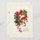 Cartão de Natal vintage personalizável que apresenta um osso de desejo decorado com sombra e bagas e uma fita vermelha.