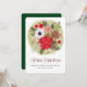 Este cartão de Natal elegante, simples e moderno é perfeito para a época de férias. Apresenta um buquê floral de Natal com poinsetos vermelhos, cones de pinho, bagas e flores brancas. É mínimo e muito fácil editar com sua própria mensagem pessoal.
