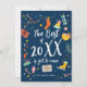 Feliz cartão de Natal com estilo nórdico, elementos engraçados e coloridos.