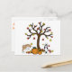 Este cartão tem dois Huskies Siberianos saltando e tocando nas folhas que caem de uma árvore com abóboras.