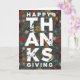 Compartilhe a sua gratidão neste feriado com este cartão floral de saudação de fundo no outono, com o grande tipo de Ação de Graças Feliz na frente. Dentro do cartão diz "Muito grato por você"
