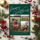 A Carta Magnética de Fotografia de Natal Verde apresenta um guião caligráfico moderno na frente, juntamente com três fotografias, e uma xadrez de Natal festiva nas costas.