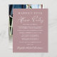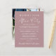Elegibilidade de rosa empoeirado ou anúncio de casamento privado, compatível com orçamento, combinado com uma recepção de casamento ou um convite de festas de celebração. A frente apresenta "Felizmente Sempre Depois da Festa" em uma mistura de simples tipografia branca e um moderno roteiro branco, e você pode personalizar sua mensagem e convite com mais detalhes e seus nomes em um roteiro semelhante a assinatura. O verso mostra sua foto favorita do casamento, seus nomes e data do casamento.