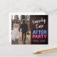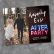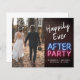Elemento legal e econômico ou anúncio de casamento e convite de recepção menores para que a família e os amigos saibam que se casaram numa pequena cerimônia de casamento e os convidem para uma recepção de casamento ou festa. A frente apresenta sua foto do dia do casamento e "Felizmente, nunca depois da festa" em uma mistura de roteiro branco e tipografia vermelha e azul com um efeito luminoso luminoso luminoso luminoso luminoso contra um fundo de tijolos. No verso, você pode personalizar sua mensagem em mais detalhes e seus nomes em um script semelhante a assinatura.