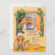Um espantalho adorável está juntando abóboras neste convite tema do outono. As folhas de outono são coletadas aos seus pés e sua foto favorita é apresentada em um quadro de vara. Adequado para o sexo e para a idade de qualquer criança.