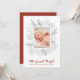 Bem-vindos à estação — e à sua mais nova chegada — com este cartão com fotos de feriados apressado. As ramificações de pínus desenhadas à mão, as poinsettias e as bagas de inverno criam um delicado quadro botânico negro em volta do retrato do seu bebê, aliado a uma saudação quente vermelha de "Feliz e Brilho". O verso apresenta um tom vermelho correspondente para um acabamento polido. Personalize facilmente com sua própria foto e mensagem para compartilhar desejos de feriados sinceros de sua família em crescimento.