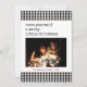 Este moderno cartão de saudação de Natal plano apresenta uma fotografia horizontal e um texto de máquina de escrever preta "Tenha um pequeno Natal feliz". O design é acentuado com cinzas e xadrez preta. Personalize com sua foto, nome e ano favoritos da família.