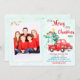 Foto Feliz de natal convite para o convite de festas de Natal. Coma, beba e seja feliz com este convite de Natal para o caminhão dos Papais noeis vermelhos com o caminhão vermelho com a árvore de Natal e o Snowman ш т as costas. Basta mudar a foto e editar este modelo fácil de usar no menu Personalização para torná-lo especial.