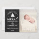 Tipografia festiva e árvore de Natal, fotografia de solteiro, cartão de férias preto de aquarela.