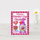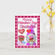 Feliz Dia dos Namorados Gnomie! Cartão de Cumprimentos Dobrado 4" x 5.6". Gnome com Pequeno Caminhão Vermelho Globo do Coração de Namorados.