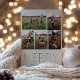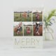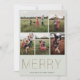 Ouro moderno e elegante "FELIZ", placa de colagem de fotos de Feriado. O cartão apresenta 5 fotos na frente com várias linhas para sua mensagem personalizada, nomes e ano atrás do cartão. As cores de fundo, mostradas em verde prateado, podem ser personalizadas.