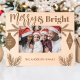Adicione um toque festivo ao seu decoro de férias com este quadro de fotos de madeira gravada com Feliz e Bright. Apresentando sotaques de férias como ornamentos e galhos verdes, este quadro é perfeito para mostrar fotos sazonais queridas. Personalize-o com o nome da sua família para um presente único e ponderado ou para uma bela adição à sua própria exposição de férias.