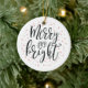 Este adorável ornamento cerâmico de Natal moderno apresenta na moda tipografia "Feliz e Brilho" e gráficos brilhantes em vermelho-coral. Adicione sua foto e texto personalizado no verso. Este ornamento fotográfico será uma decoração de Natal na moda ou um presente de Natal personalizado para a sua família ou amigos. Mais itens e opções de cores correspondentes disponíveis no meu compro BaraBomDesign.