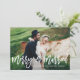 Espalhe a alegria de férias com este elegante cartão de feriado. Esta placa plana apresenta o script "feliz e casado" com letras manuais e fundo de neve vermelho e branco. O cartão perfeito para recém-casados. Uma versão de cartão postal e de cartão dobrado está disponível.
