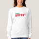 Você está pronto para celebrar o Natal em estilo com este suéter. Apresentando o texto "Feliz e brilhante" em vermelho e verde, tipografia do estilo da universidade.