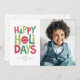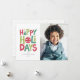 Envie desejos de feliz e feriados brilhantes com este cartão de feriado colorido de uma foto, com ilustrações divertidas e lúdicas como parte da palavra "feriados felizes". A parte de trás apresenta pontos de coordenação coloridos de confetti. Localize rótulos de endereço correspondentes, etiquetas de presentes e bolsas e mais etiquetas de presentes no Lea Delaveris Design Happy na coleção.