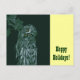 Cartão-postal de Férias Feliz. Coruja de Cinzas excelentes ou Coruja Lapland (Strix nebulosa), coruja muito grande, distribuída pelo Hemisfério Norte. Este cartão pode ser personalizado adicionando seu próprio texto.