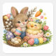 Celebre a Páscoa com esta adorável folha de adesivos apresentando um coelho e um pintinho cercados por ovos coloridos, flores e elementos da primavera. Perfeito para decorar sacolas de presentes, brindes de festa, cartões de felicitações ou artesanatos. Esses adesivos quadrados alegres trazem um toque festivo a qualquer celebração de Páscoa e são ideais para crianças e adultos