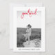 Celebre a temporada de gratidão com este moderno cartão com fotos de Ação de Graças, com uma tipografia "grata" ousada e sua foto de família favorita. O design minimalista limpo é perfeito para enviar desejos de férias calorosos a amigos e entes queridos. Personalize com seu nome de família e ano para um toque pessoal. Uma escolha na moda para famílias que amam uma estética simples e moderna. Perfeito para saudações de Ação de Graças, cartões com fotos de férias ou atualizações da família de outono.