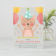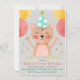 Gatinho de aquarela branca e balões cor-de-laranja amarelo-rosa e tipografia cor-de-rosa-rosa e amarela.
